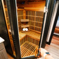 Forester Cabin is a one-of-a-kind eco-luxe cabin, tailor-made for a couple’s getaway in Hocking Hills. Surrounded by 202 acres of pristine wilderness at Bourbon Ridge Retreat, this retreat invites you to explore private hiking trails, soak in the hot tub, or cozy up by the fire pit. The gourmet kitchen is fully stocked, ensuring effortless meal preparation, while the custom tile shower and infrared saunas provide a touch of indulgence. An electric fireplace adds warmth and charm, and large flat-screen TVs offer entertainment for a relaxing night in.