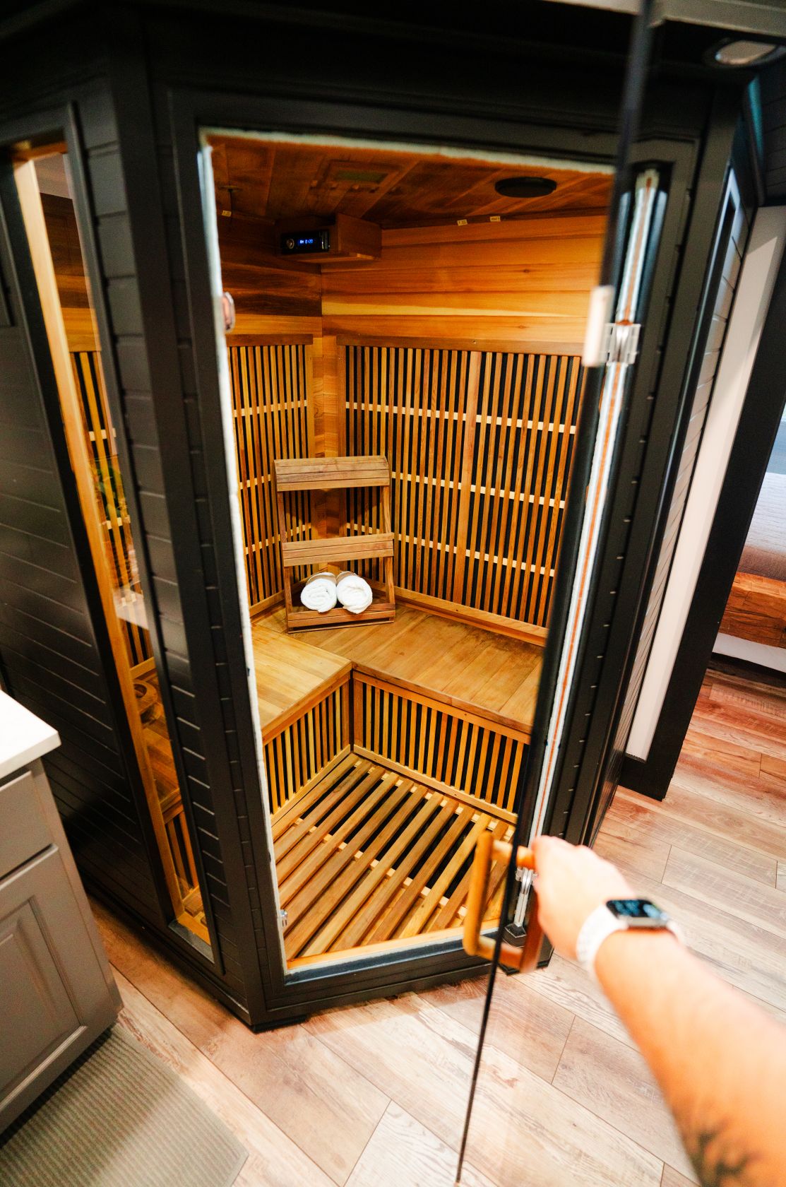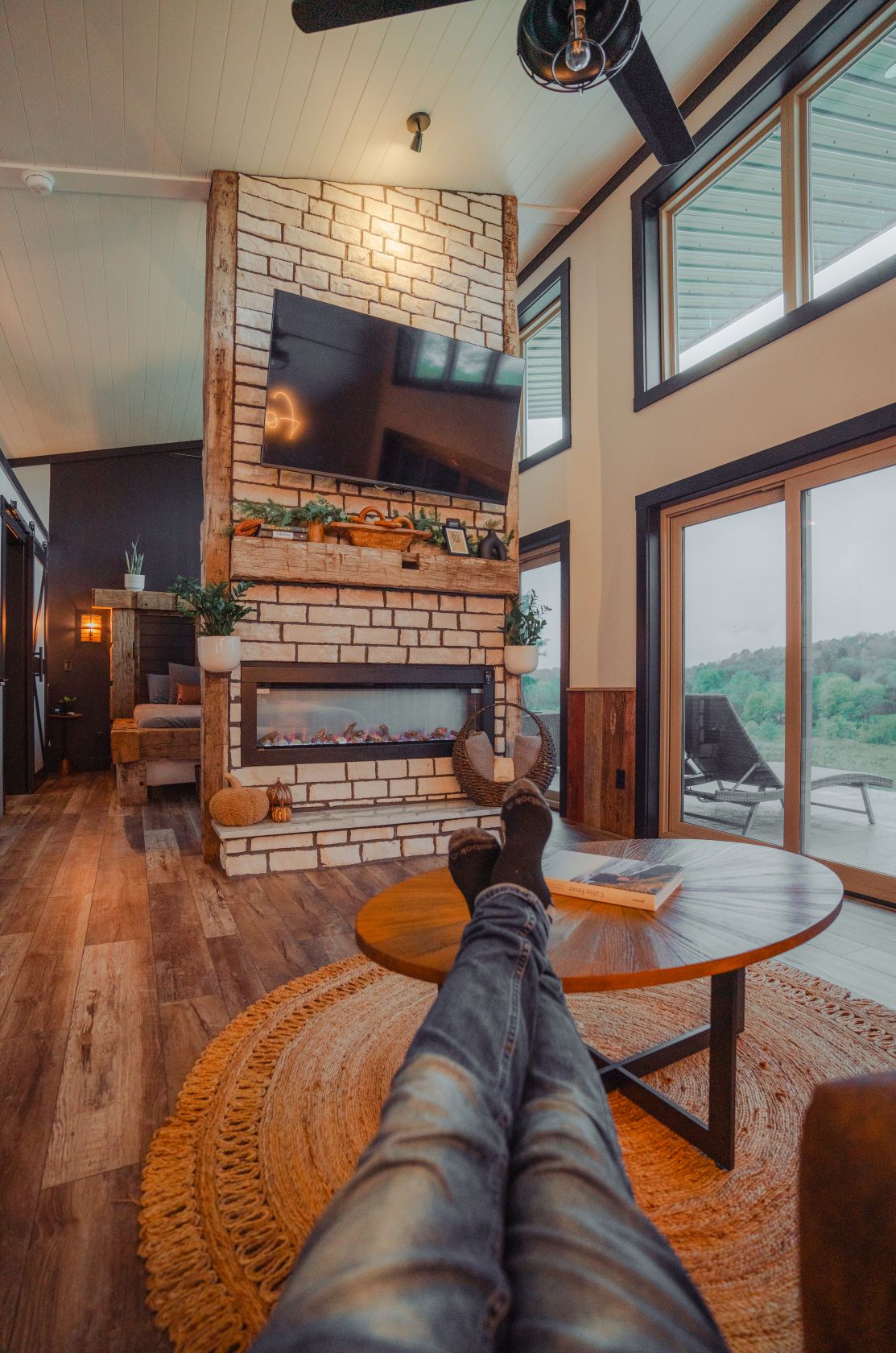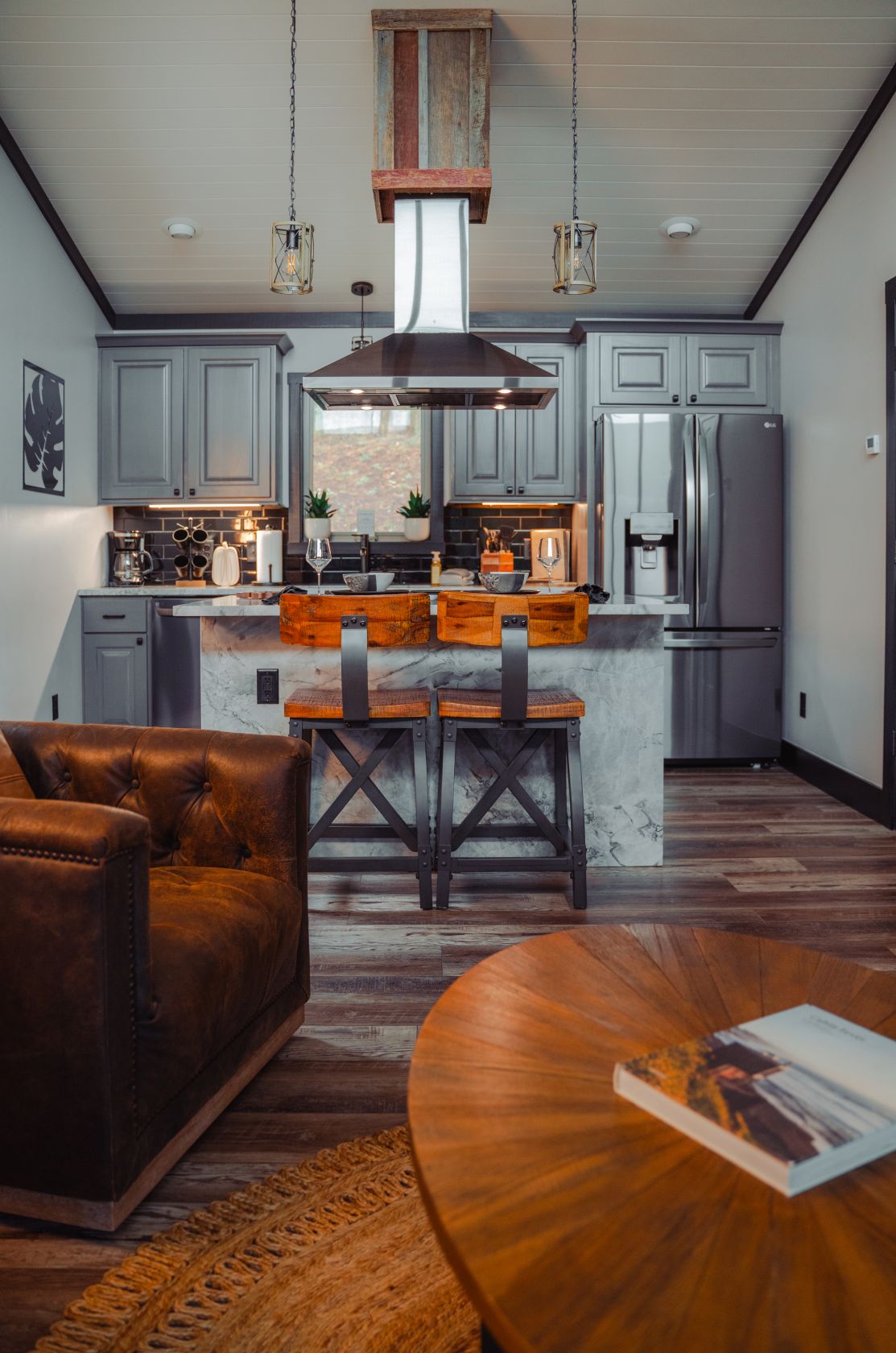 Forester Cabin is a one-of-a-kind eco-luxe cabin, tailor-made for a couple’s getaway in Hocking Hills. Surrounded by 202 acres of pristine wilderness at Bourbon Ridge Retreat, this retreat invites you to explore private hiking trails, soak in the hot tub, or cozy up by the fire pit. The gourmet kitchen is fully stocked, ensuring effortless meal preparation, while the custom tile shower and infrared saunas provide a touch of indulgence. An electric fireplace adds warmth and charm, and large flat-screen TVs offer entertainment for a relaxing night in.